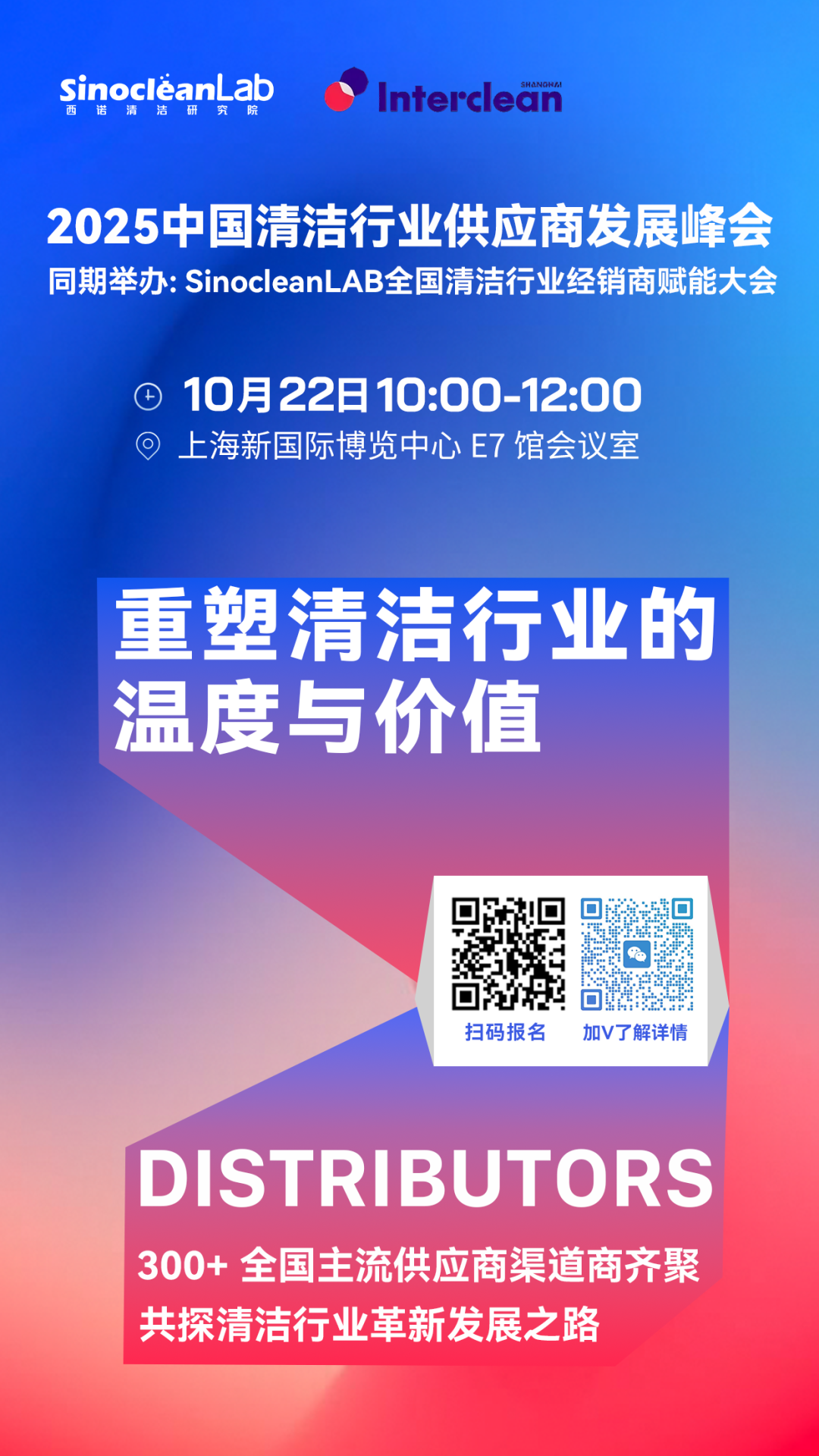为此,SinocleanLAB西诺清洁研究院联合锐昂展览(上海)有限公司,在10月22日在上海新国际博览中心E7馆会议室举办2025中国清洁行业供应商发展峰会,SinocleanLAB全国清洁行业经销商赋能大会,聚焦大家最为关注的热门话题,聆听来自代理商的声音。同期举办荷兰阿姆斯特丹国际清洁与维护展览会·上海展Interclean Shanghai 10.22-24 上海新国际博览中心